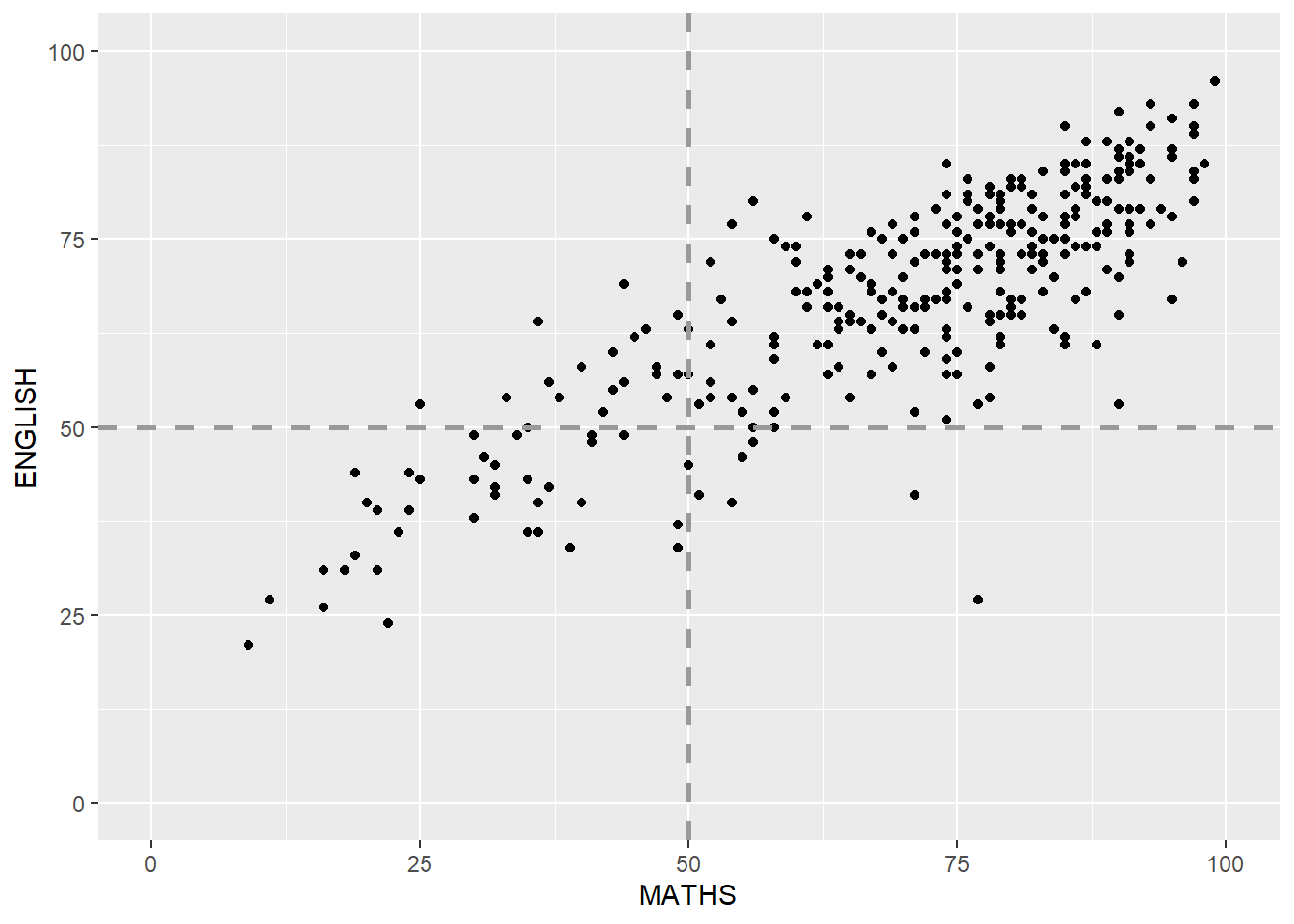 aes(x=MATHS, y=ENGLISH)) +