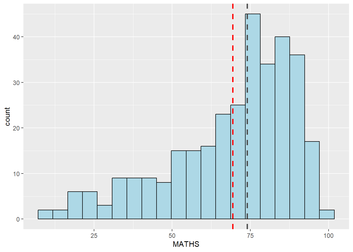 geom_vline(aes(xintercept=mean(MATHS, na.rm=T)),