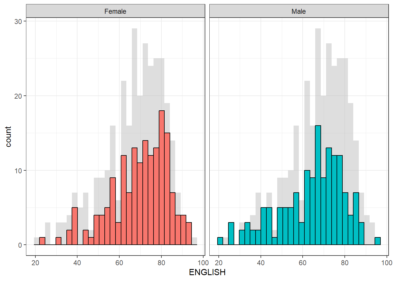 geom_histogram(data = d_bg, fill = "grey", alpha = .5) +