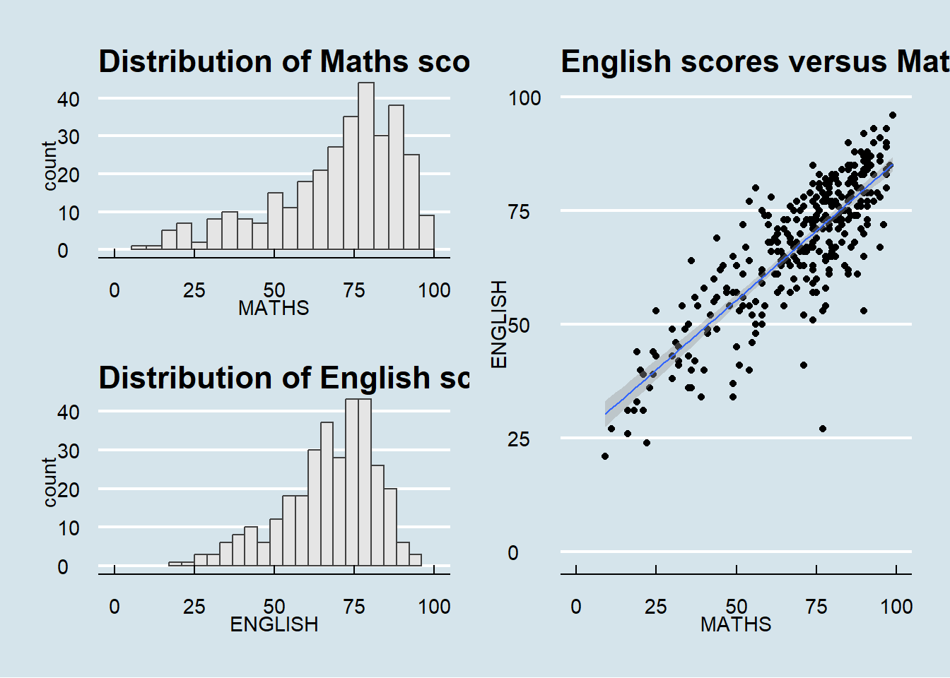 ggtitle("English scores versus Maths scores for Primary 3")Working with patchwork
